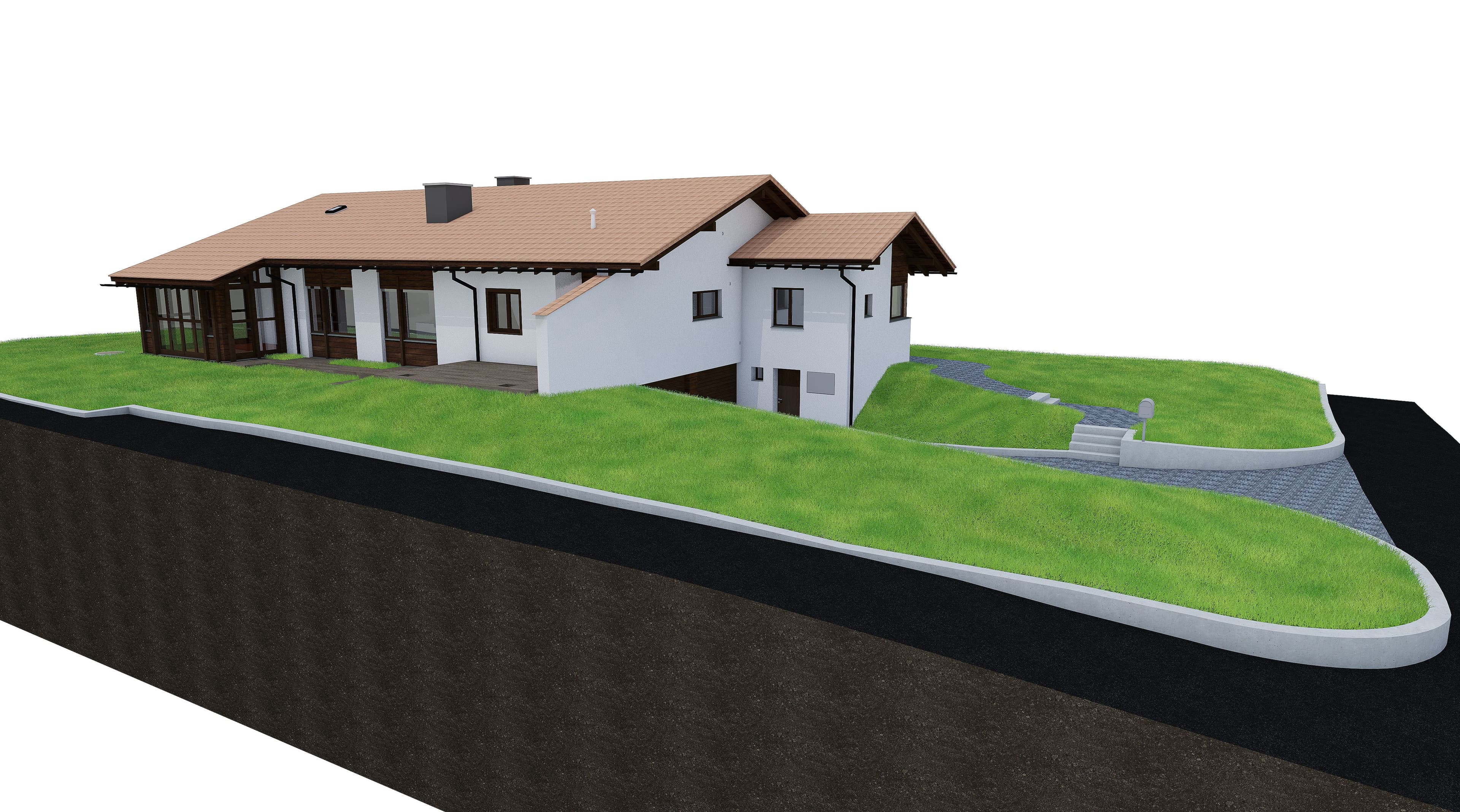 Von diesem Einfamilienhaus in Ilanz hat die VDE eine Gebäudeaufnahme ausgeführt und aus der Punktwolke ein 3D Modell in ArchiCAD modelliert. Zusätzlich zum Gebäude wurde auch das Gelände vom Grundstück modelliert.