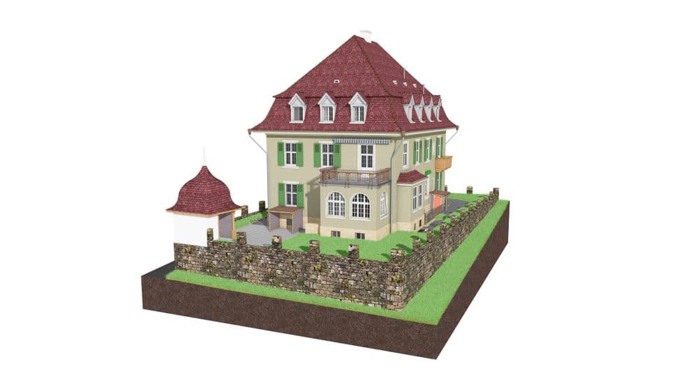 An der beliebten Seepromenade in Murten präsentiert sich auf einem einzigartigen Grundstück direkt am See diese Villa. VDE konnte das Gebäude in 3D modellieren.