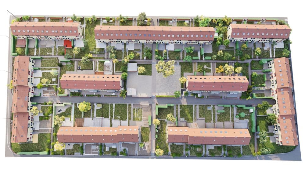 Die Siedlung Schweighof umfasst 69 Reihenhäuser und stellt damit eine ganze Wohnanlage dar.